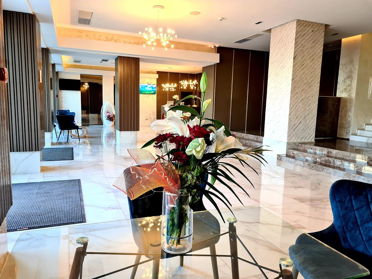 Echipa este minunată de la recepție până la bucătărie, toată lumea zâmbitoare și să îți sară in ajutor. Dimineața ne au mutat masa la soare ca să nu ne fie frig. La recepție ne au lăsat sa mai stam câteva ore sa ne bucuram de soare în septembrie, cu un late check out din partea casei. Oamenii merită un 5 stele, hotelul nu este chiar pe plajă dar se vede marea, este renovat și arată bine mi a plăcut vopseaua de pe pereți din hol și mocheta din cameră. Curățenia este bună camera mirosea a curat când am întrat, dar atenție mare la detalii, sus în ventilator se adunase praful, balustrada din balcon este de sticla și se vede totul pe ea, fiind la sfârșit de sezon nu cred ca ar trebui depunctați. Va mulțumim pentru timpul petrecut la hotel, ne am simțit excelent, spor cu spa ul pentru la anul.